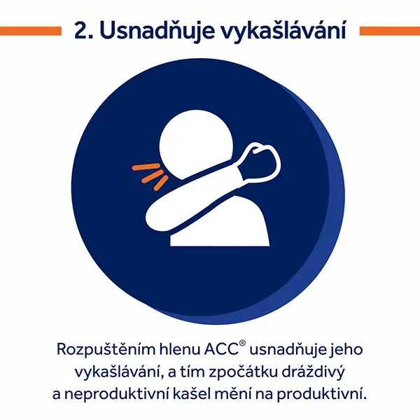 ACC® 20 mg/ml SIRUP se užívá k léčbě akutních i chronickýchonemocnění dýchacích cest, která jsou provázena intenzivní tvorbou hustéhovazkého hlenu a vlhkým kašlem. Účinná látkaacetylcystein snižuje vazkost hlenu, usnadňuje vykašlávání a má navícantioxidační účinek. Vhodné k užívání od prvních příznaků kašle.