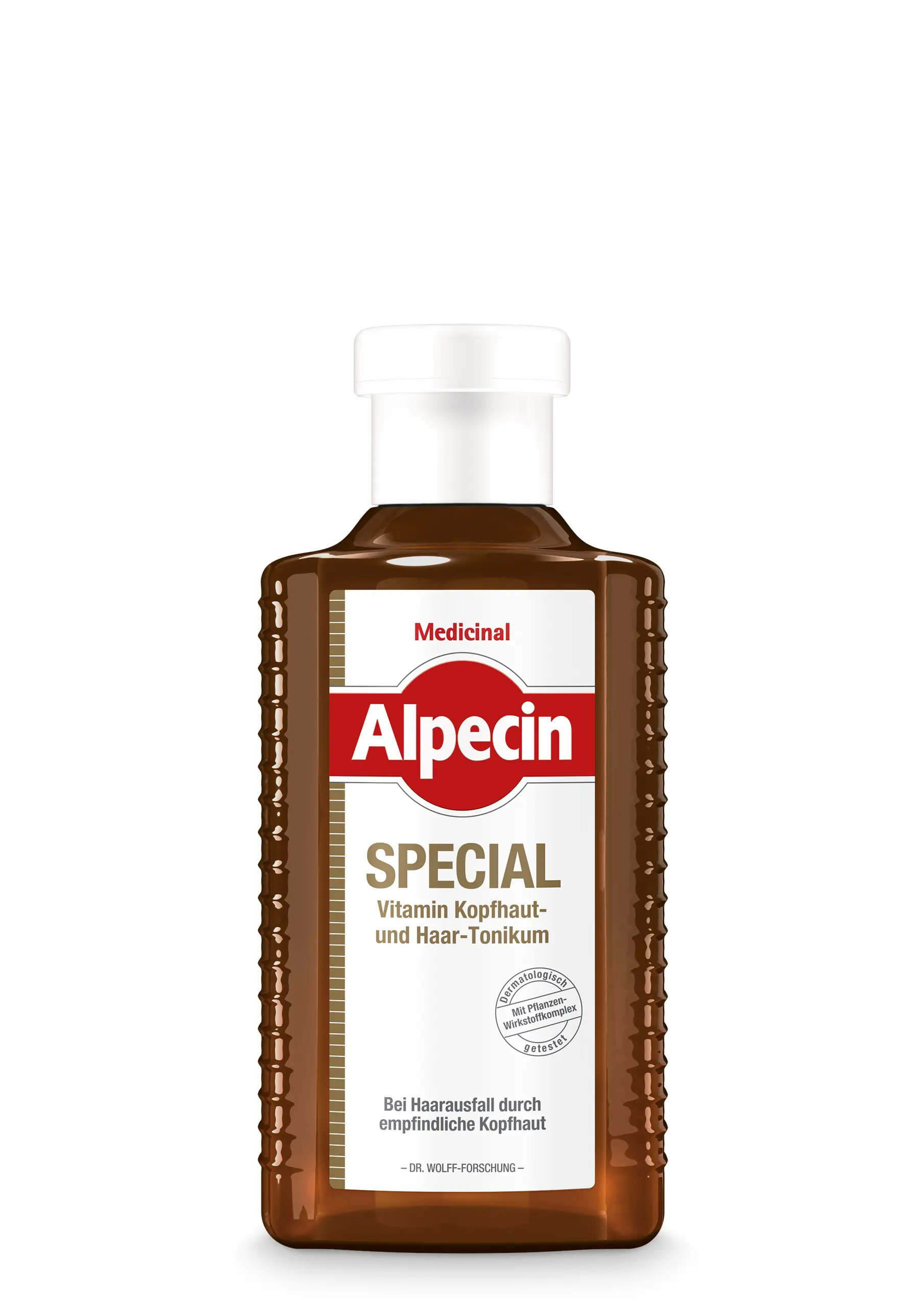 Alpecin Medicinal SPECIAL působí preventívně proti vypadávaní vlasů na namáhané a citlivé pokožce hlavy. Výtažek z chmele v toniku zklidňuje pokožku hlavy a pomáhá zmírnit svědění. Pro účinné posílení obranné funkce pokožky obsahuje také vitaminy A a E a esenciální mastné kyseliny.