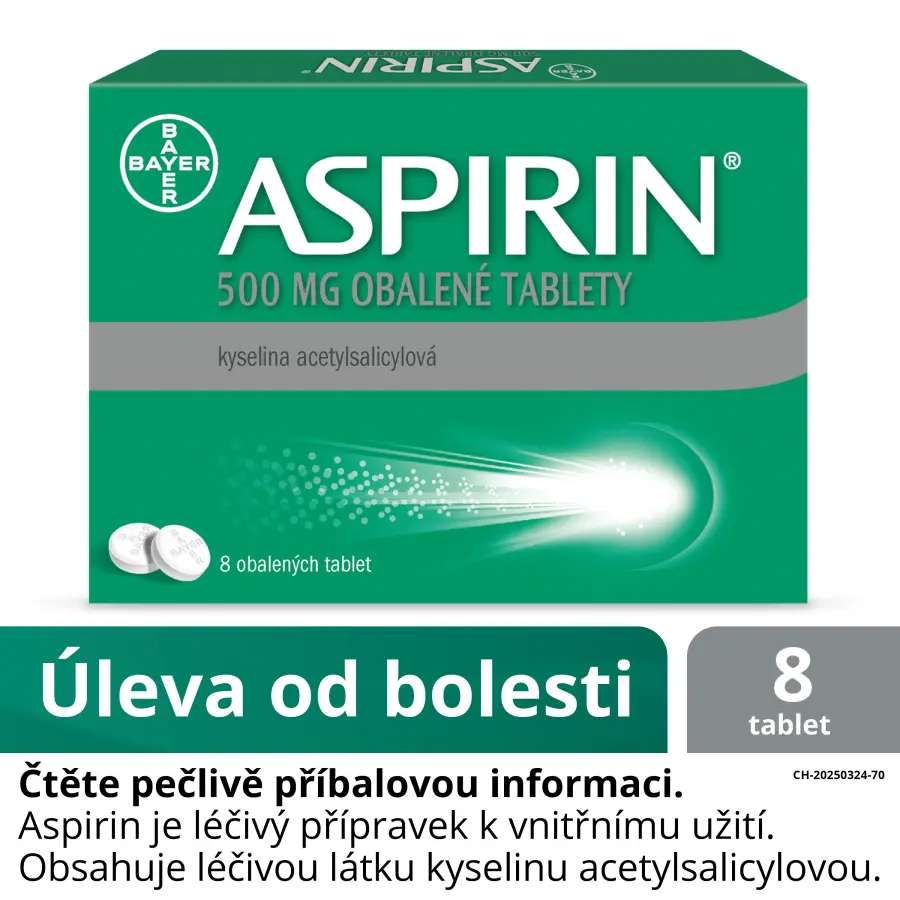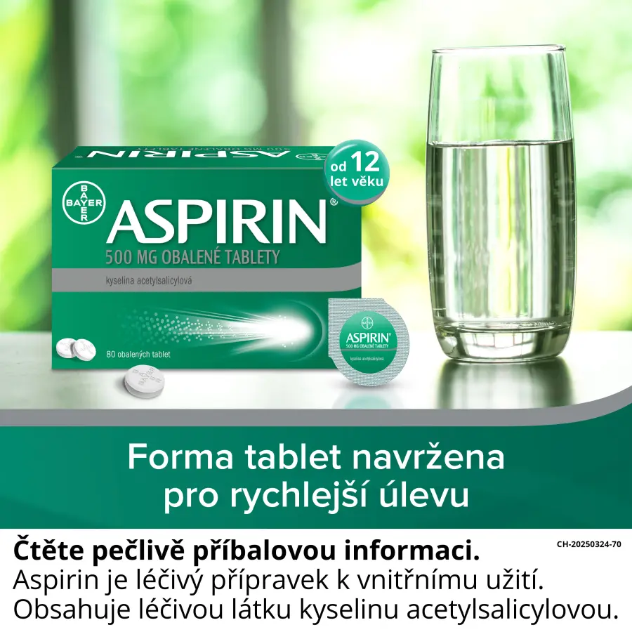 Aspirin je volně prodejný léčivý přípravek. Aspirin přináší rychlou úlevu od bolestí různého původu a horečky, a to díky speciálně navržené formě tablet. Aspirin obsahuje léčivou látku kyselinu acetylsalicylovou. Kyselina acetylsalicylová účinkuje jako analgetikum (ulevuje od bolesti), antipyretikum (snižuje horečku) a působí protizánětlivě. Přípravek Aspirin se používá k symptomatické léčbě horečky a/nebo mírné až středně silné bolesti, jako je bolest hlavy (tenzní i migrenozní), bolest kloubů, bolest zubů nebo svalů, menstruační bolest. Technologie výroby tablet usnadňuje vstřebání léčivé látky do krevního oběhu a tím také zajištuje rychlejší nástup účinku. Aspirin je určen pro dospělé a dospívající od 12 let věku (a vážící 40 kg a více).