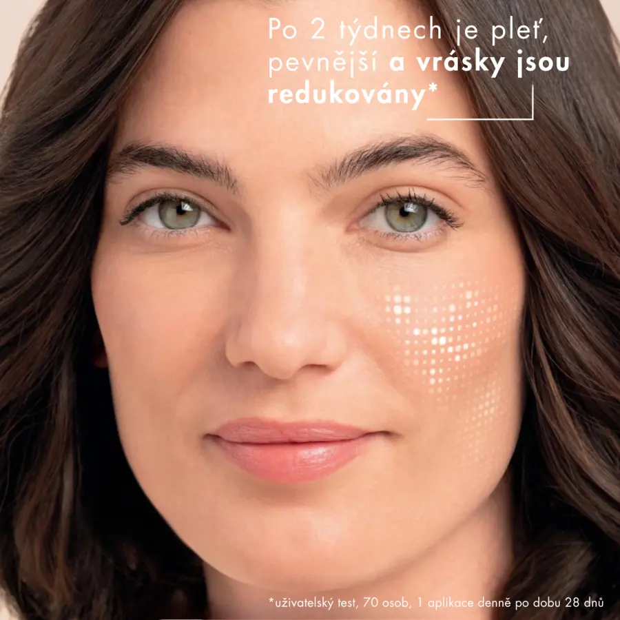 Redukuje vrásky, zpevňuje pleť a stimuluje buněčnou obnovu.