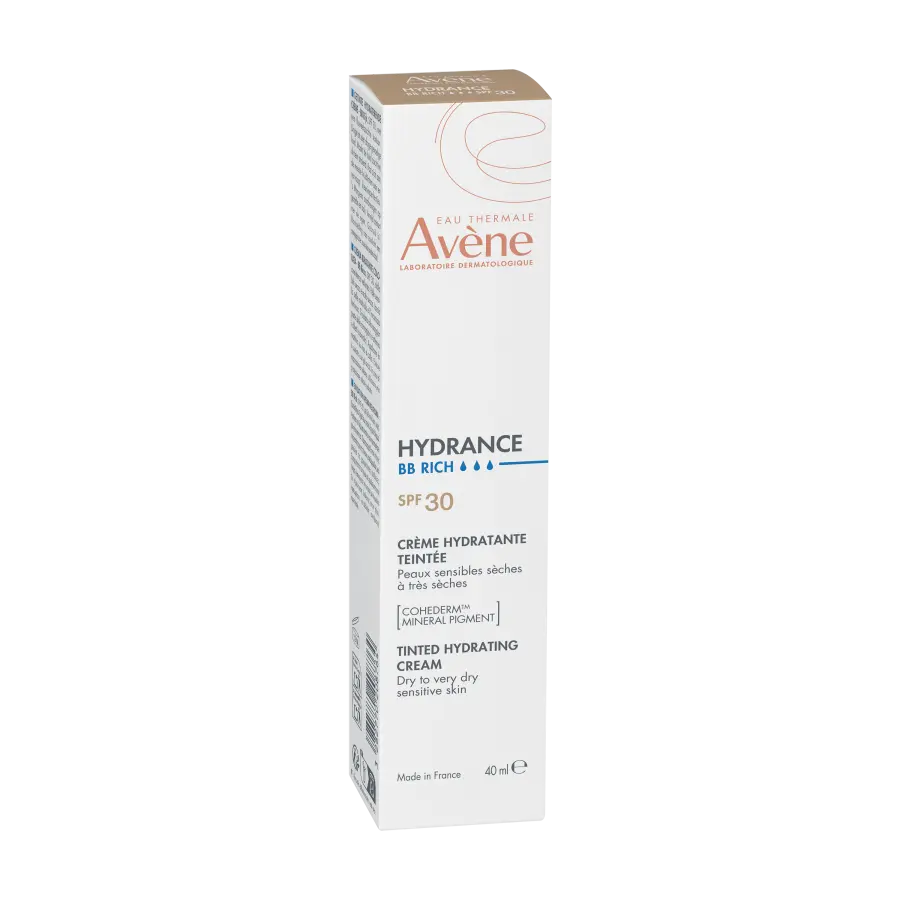 Avène Hydrance BB-Výživný tónovací hydratační krém poskytuje suché až velmi suché citlivé pleti dlouhodobou hydrataci, sjednocuje její barevný odstín, rozjasňuje ji a chrání před vnějšími agresivními vlivy.
