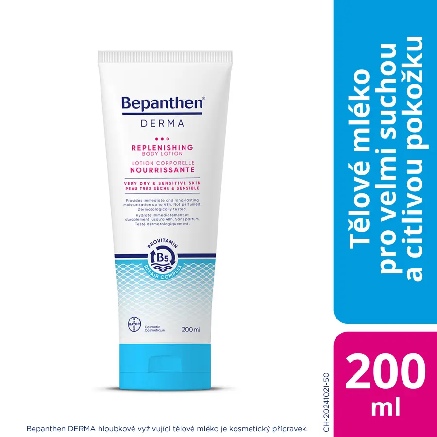 Bepanthen Derma hloubkově vyživující tělové mléko pečuje o velmi suchou a citlivou pokožku. Zklidňuje, zanechává pokožku hydratovanou a jemnou.