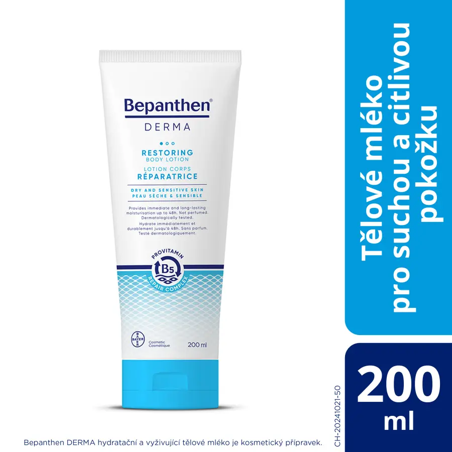 Bepanthen Derma hydratační a vyživující tělové mléko pečuje o suchou a citlivou pokožku, poskytuje okamžitou úlevu a dlouhotrvající ochranu.