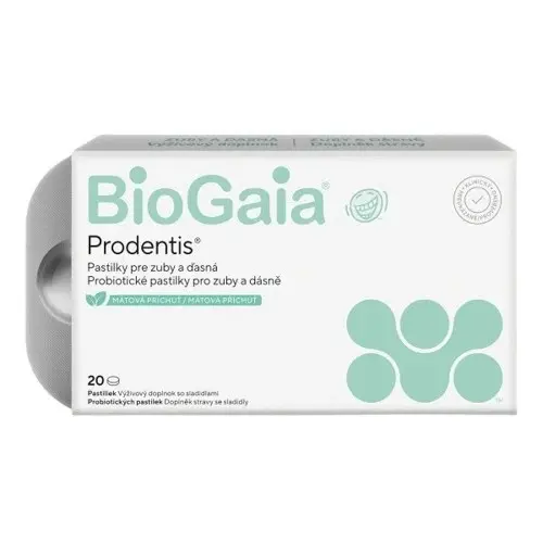 BioGaia® Prodentis® probiotické pastilky je doplněk stravy obsahující patentovanou kombinaci 2 probiotických kmenů Limosilactobacillus reuteri Prodentis® (L. reuteri DSM 17938 a L. reuteri ATCC PTA 5289), jež přispívá k péči o ústní dutinu. Jedna pastilka obsahuje více než 200 milionů živých bakterií L. reuteri Prodentis®. Bezpečnost orálních probiotik BioGaia® Prodentis® byla testována ve více než 50 klinických studiích.