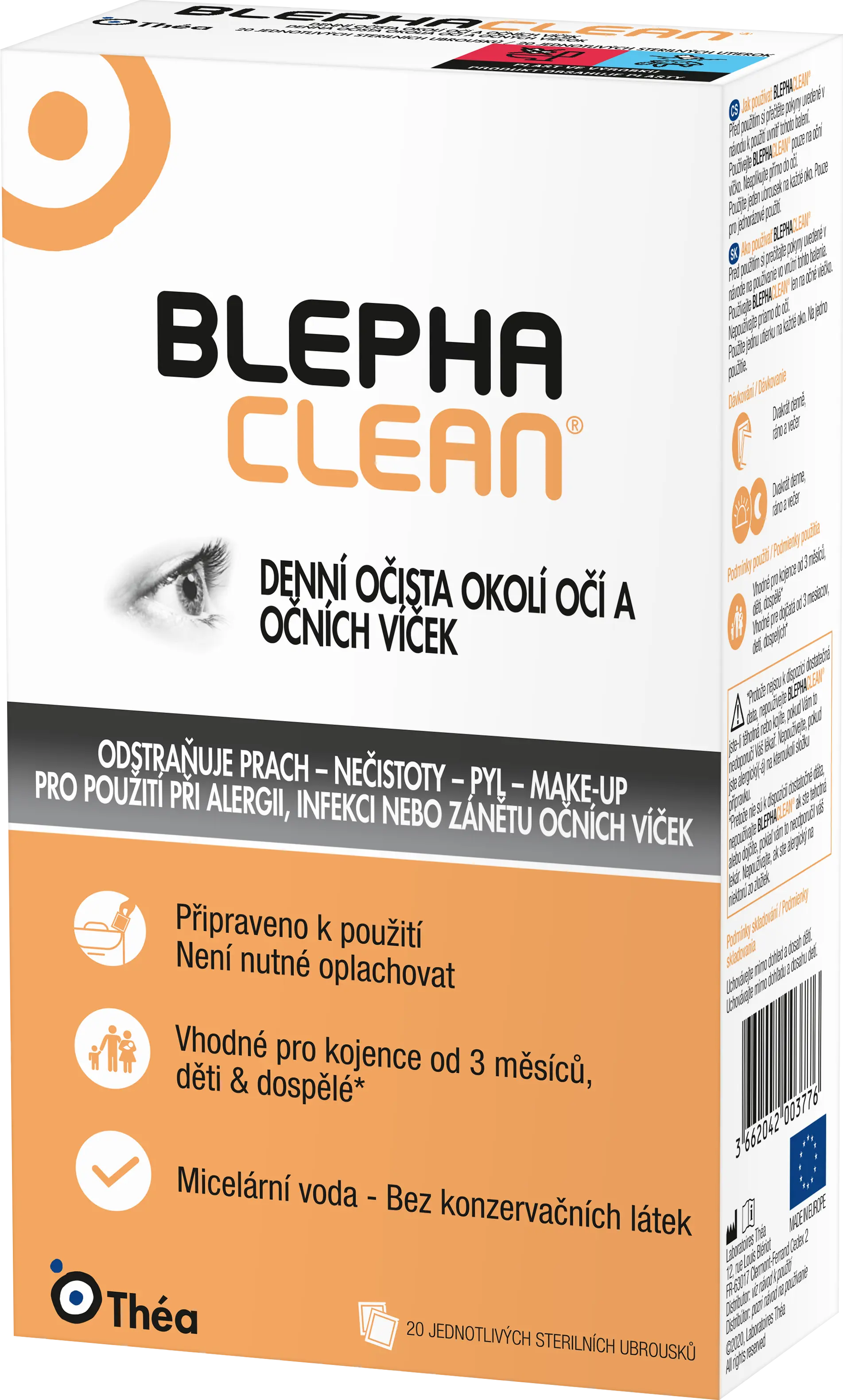 Blephaclean je vysoce tolerantní micelární přípravek pro čištění očních víček. Vhodný pro každodenní hygienu očních víček a citlivé pokožky a za účelem udržování očních víček čistých před oftalmologickými zákroky a po nich. Není parfémovaný, mastný a není nutné ho po použití oplachovat.