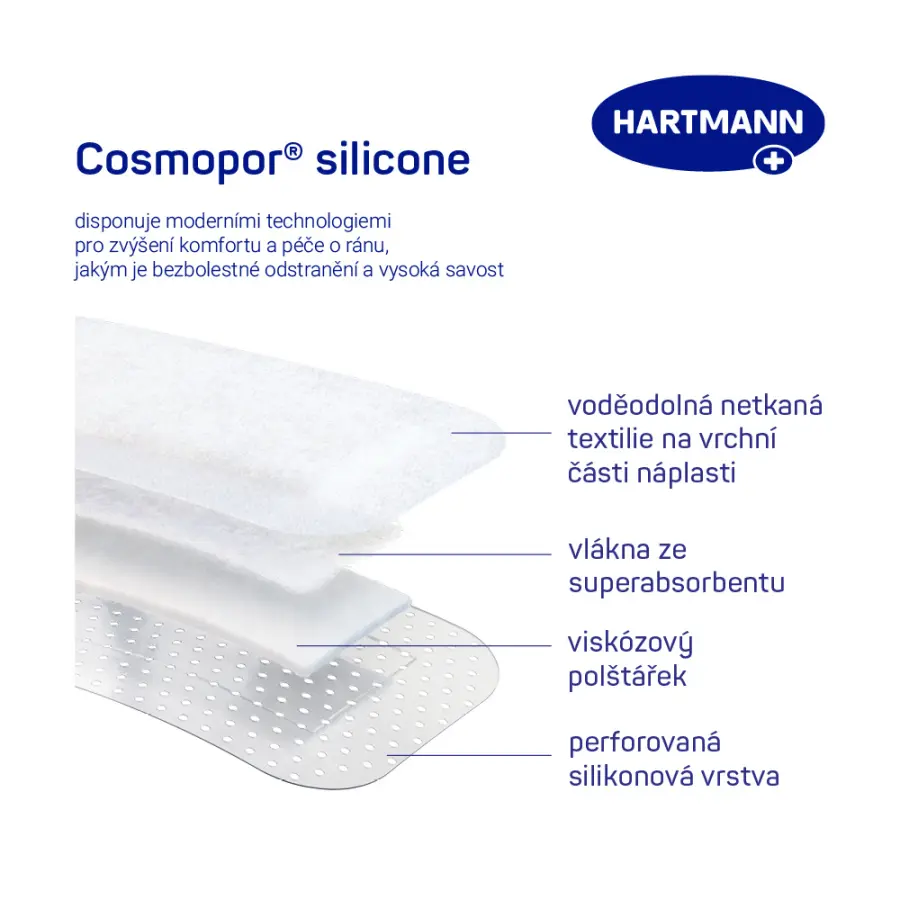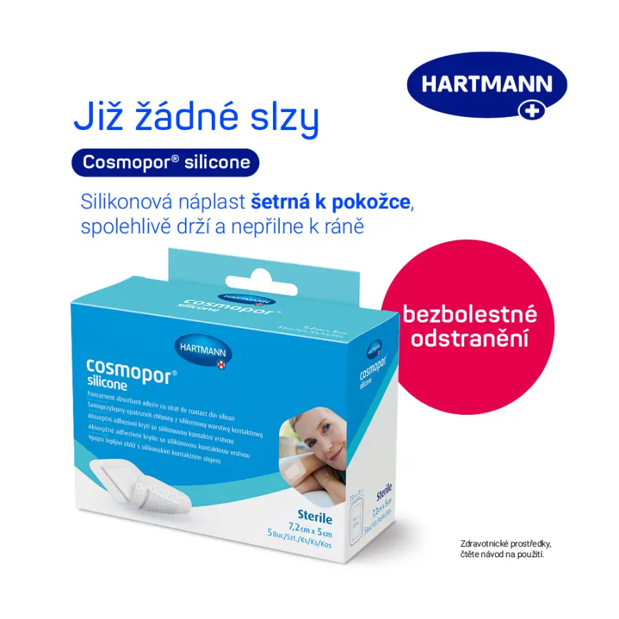 Cosmopor® Silicone je nejen účinná a bezpečná, sterilní náplast pro ochranu vašich ran, ale také vyniká svým bezbolestným odstraňováním. Díky měkkému silikonovému materiálu se náplast snadno a rychle odstraňuje, aniž by způsobila bolest.