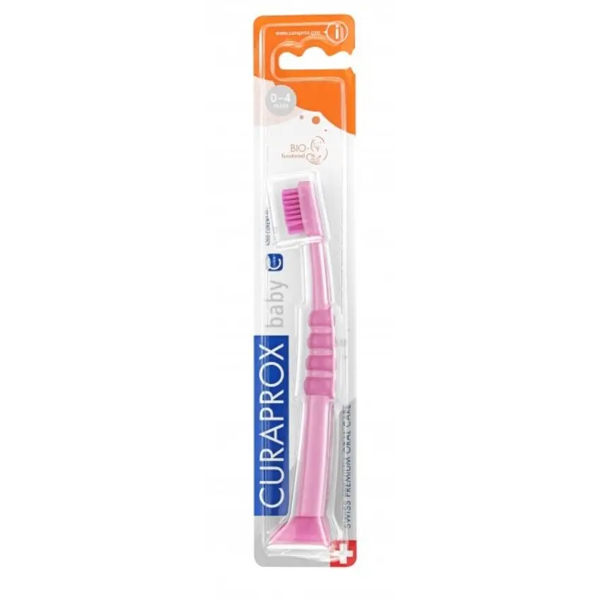Curaprox Baby dětský kartáček 0 - 4 roky je zubní kartáček pro nejmenší děti. Jeho malá, zkosená hlavička s ultrajemnými vlákny CUREN je plně chráněna měkkým pryžovým povlakem, který zajišťuje bezproblémové přijetí kartáčku dětmi a zabraňuje poranění při neopatrné manipulaci. Zubní kartáček je k dostaní v růžové nebo modré barvě.