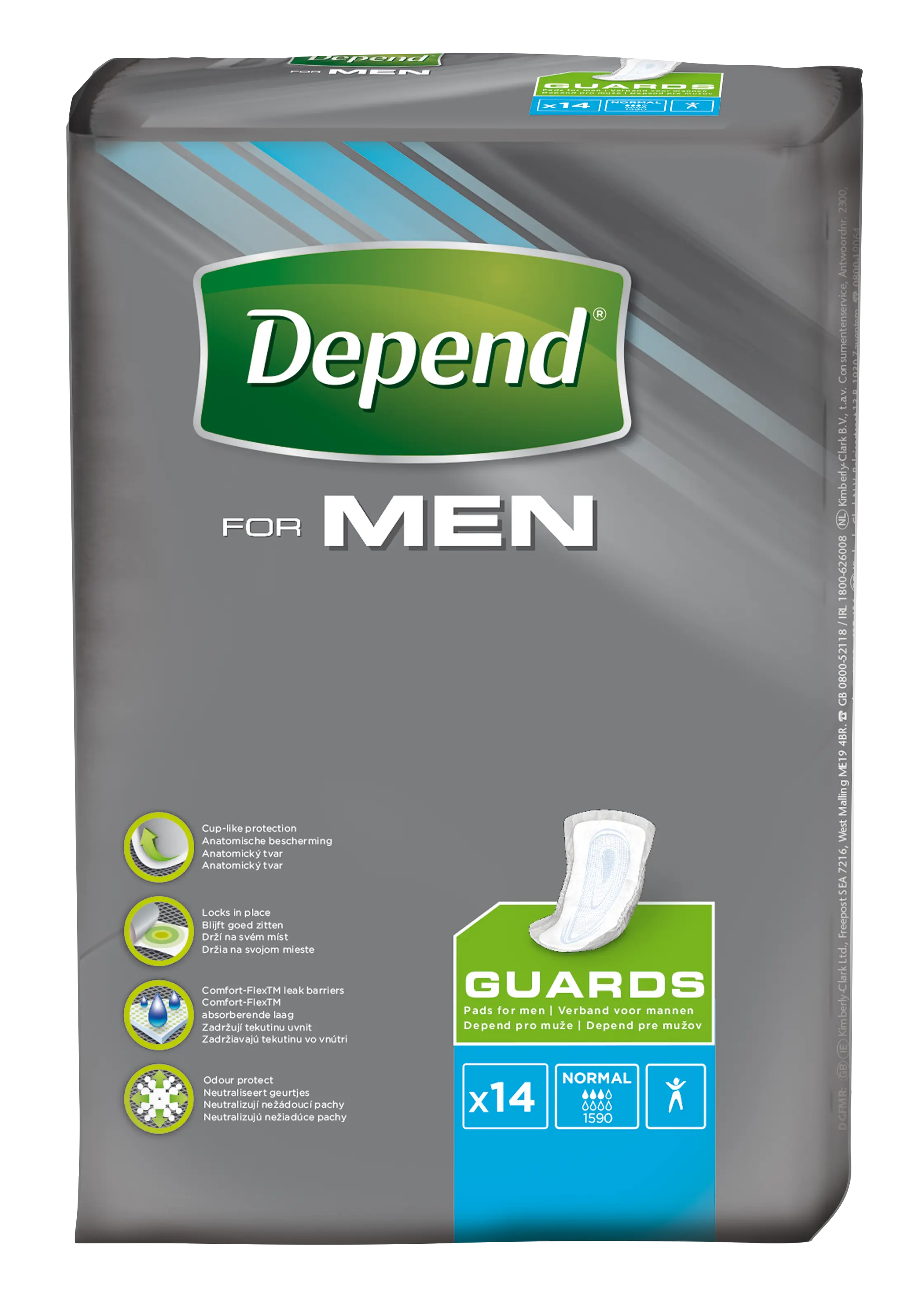 Depend Guards pánské inkontinenční vložky jsou vhodné pro slabý únik moči. Anatomické tvarování zajišťuje maximální ochranu a šedá vnější vrstva zařídí maximální diskrétnost. Vložky díky absorpčnímu jádru rychle uzavírají vlhkost a pohlcují zápach. Jsou jednotlivě balené pro jednoduché, hygienické a diskrétní použití.