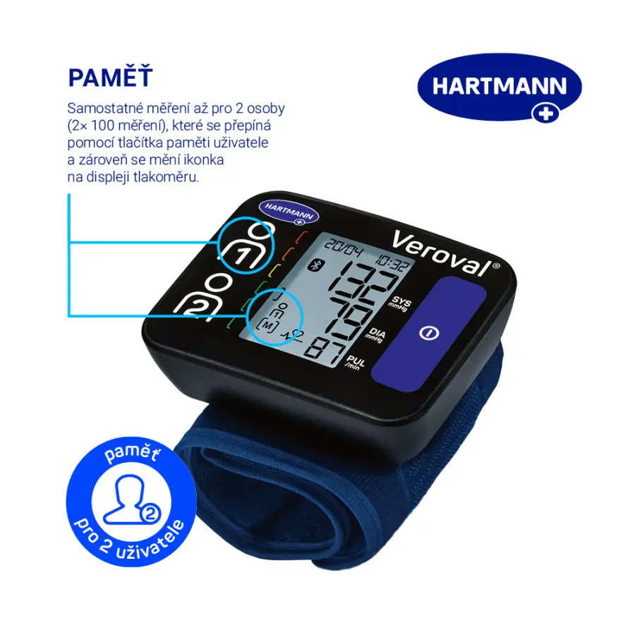 Hlavní výhody zápěstního tlakoměru HARTMANN Veroval compact + connect: