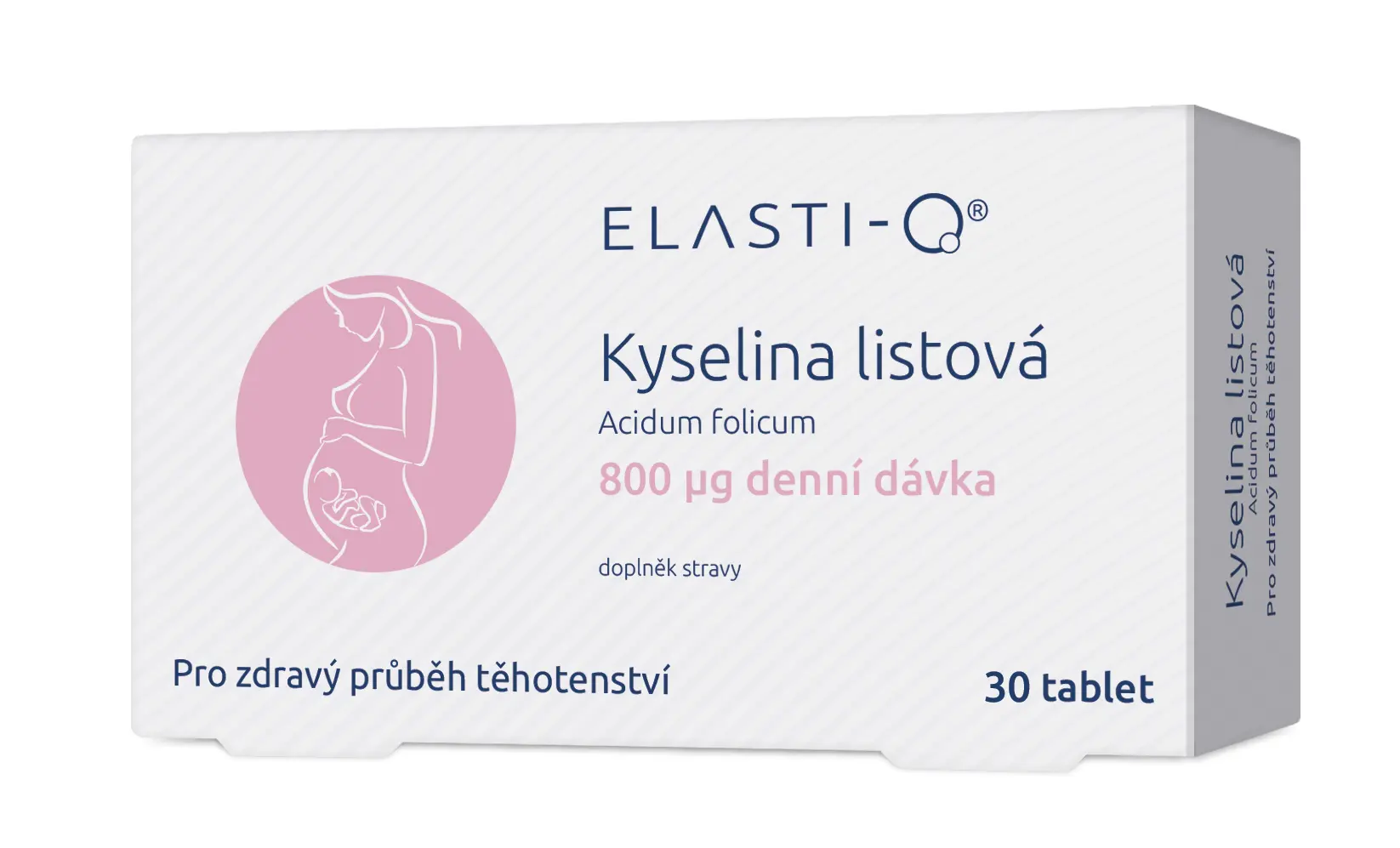 Elasti-Q Kyselina listová 800 je doplněk stravy s obsahem kyseliny listové, která napomáhá procesu dělení a diferenciaci buněk, přispívá k normální krvetvorbě a růstu zárodečných tkání během těhotenství. Také obsahuje vitamin B6, který přispívá k normální tvorbě červených krvinek a hemoglobinu, a k normální funkci imunitního systému.