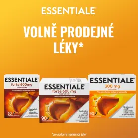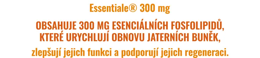 Essentiale® 300 mg je volně prodejný léčivý přípravek k vnitřnímu užití, který podporuje přirozenou regeneraci poškozených jaterních buněk díky esenciálním fosfolipidům přírodního původu (ze sóji), které jsou účinnou látkou tohoto přípravku.