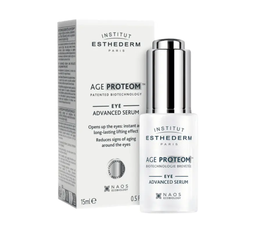 ESTHEDERM Age Proteom pokročilé oční sérum je první oční sérum na ochranu proteomu pokožky díky technologii AGE PROTEOM™ a patentované biotechnologii, které viditelně a dlouhodobě koriguje všechny známky stárnutí očního okolí jako jsou vrásky, otoky, ochablá víčka a tmavé kruhy. Obsahuje vysoce účinné antioxidanty s "chaperonovým" efektem, které chrání proteiny, jako jsou kolagen, elastin a keratin.