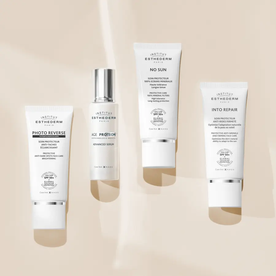 ESTHEDERM Sun Into Repair face cream SPF50+ je protivráskový krém na obličej na ochranu pleti netolerující slunce s vysokou ochranou (SPF 50), který snižuje citlivost hyperreaktivní pokožky a podporuje její postupnou adaptaci na slunce. Zároveň chrání pleť před stárnutím, zpevňuje pokožku a působí proti vráskám. Má krémovou texturu bez parfemace pro optimální toleranci.