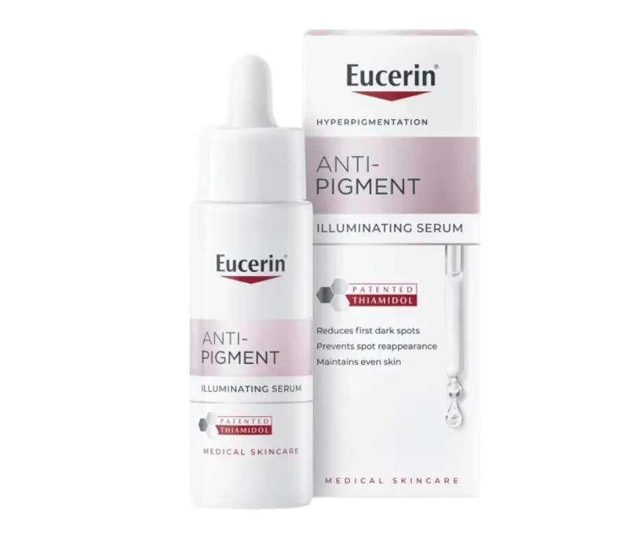 Eucerin Antipigment rozjasňující sérum s obsahem thiamidolu pro zářivý vzhled pleti. Redukuje pigmentové skvrny a brání tvorbě nových. Sjednocuje tón pleti, rozjasňuje pokožku a zanechává ji hladší.