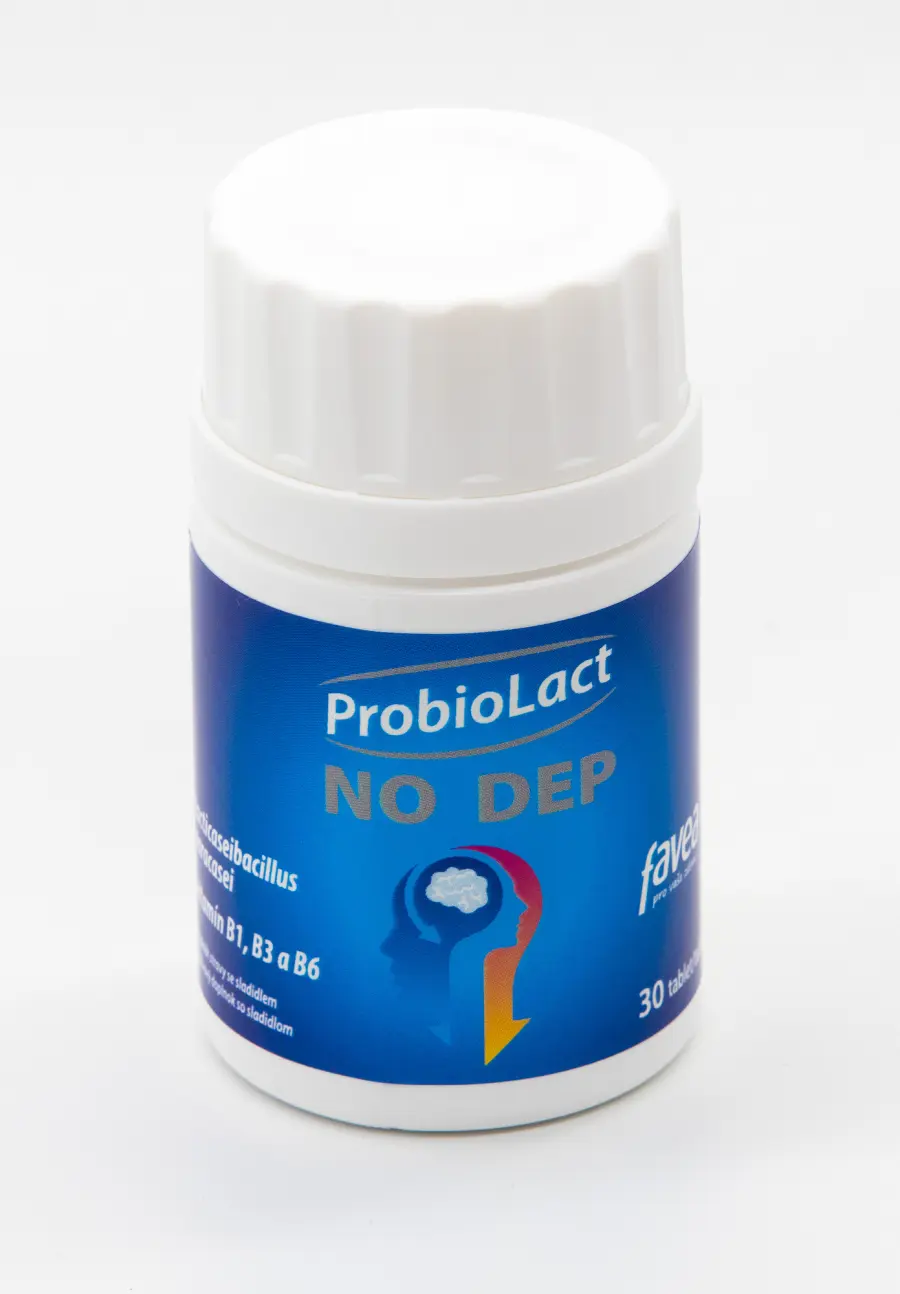 ProbioLact NO DEP je doplněk stravy ve formě tablet, který obsahuje kombinaci důležitého probiotika Lpc-37® 17 x 109 CFU/tbl. s vybranými B vitamíny. Přispívá k normálním psychickým funkcím, zahrnujícím schopnost koncentrace, učení, paměti a myšlení běhemvývoje dětí a adolescentů. Kombinace tří Bvitamínů také podporuje normální činnost nervovésoustavy, která ovládá činnost všech orgánů v těle. Niacin přispívá též k udržení normálního stavusliznic a normálního stavu pokožky, což je důležité pro psychický stav mládeže adorující vzhled jedince. Probiotikum přispívá k udržení homeostázy (stálosti vnitřního prostředí) k harmonizaci fyziologických procesů výživy – probiotická kultura je pro zdraví.