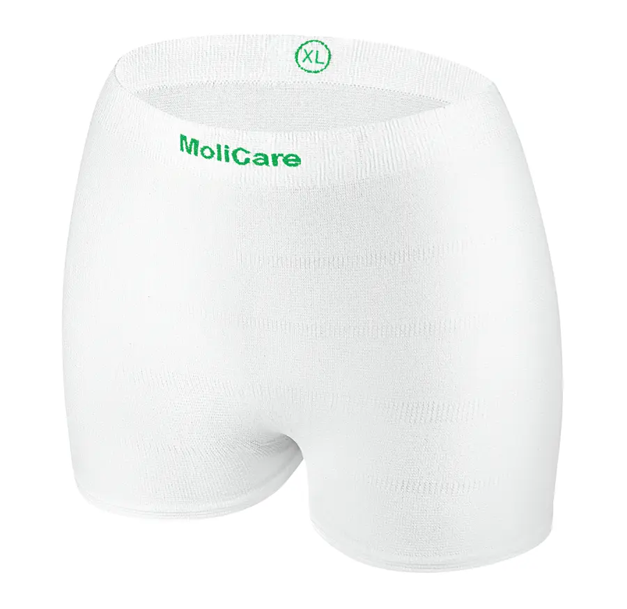 Síťované kalhotky MoliCare Fixpants umožňují bezpečnou, hygienickou a přitom jednoduchou fixaci inkontinenčních nebo porodnických vložek SAMU. Používají se také pro fixaci vložných plen. Jsou stejně vhodné jak pro ležící, tak i pro mobilní pacienty.