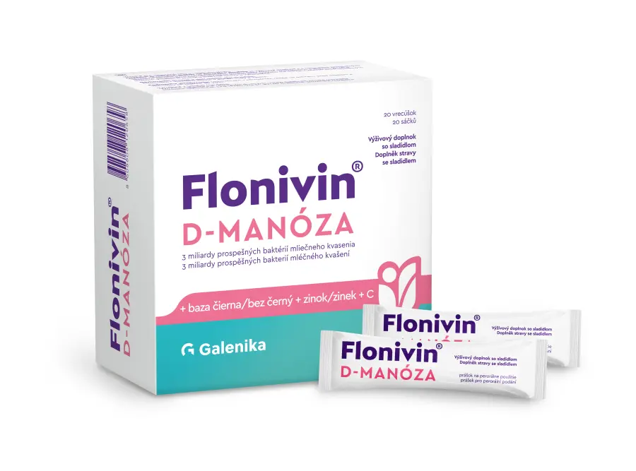 Flonivin® D-manóza, prášek pro perorální podání je doplněk stravy s 3 miliardami prospěšných bakterií mléčného kvašení, D-manózou, plodem bezu černého, vitaminem C a zinkem.