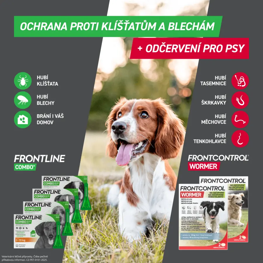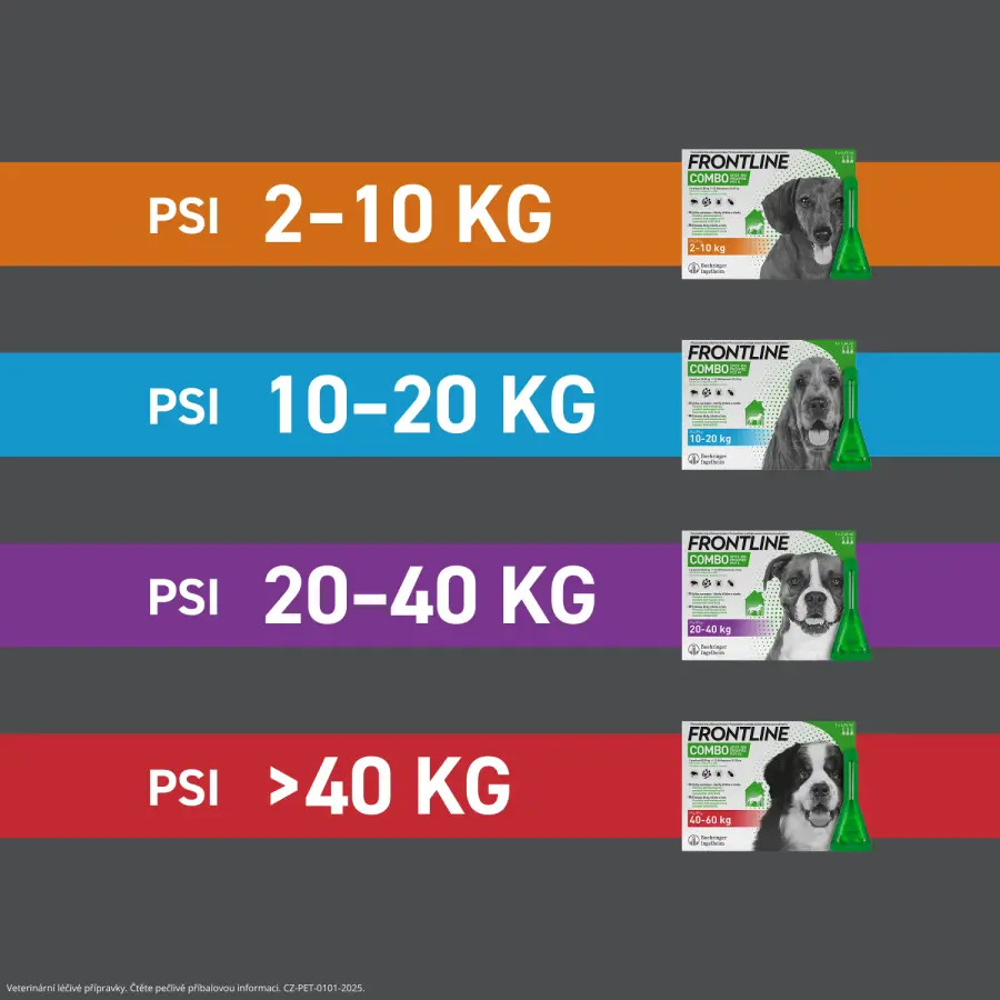 Frontline Combo Spot-on je veterinární přípravek určený pro psy k léčbě a prevenci proti napadení blechami, a to pouze blechami nebo blechami spolu s klíšťaty či všenkami. Insekticidní účinek proti napadení dospělými blechami trvá po dobu 8 týdnů. Zabránění pomnožení blech potlačením vývoje vajíček, larev a jejich vývojových stádií vyvinutých z vajíček nakladených dospělými blechami po dobu 8 týdnů po aplikaci. Přípravek má trvalý akaricidní účinek po dobu až 4 týdnů proti klíšťatům.