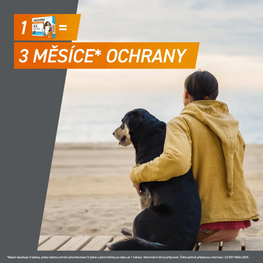 FRONTPRO® poskytuje vašemu psovi ochranu před blechami a klíšťaty po dobu jednoho měsíce.