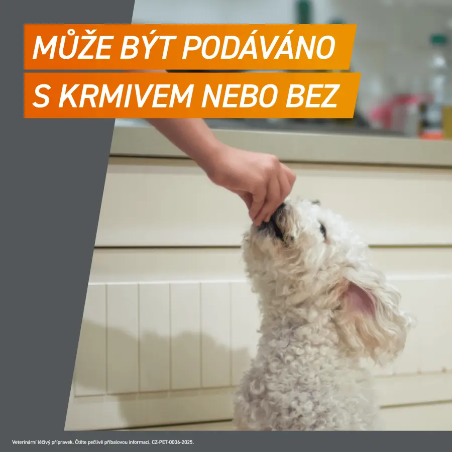 Tablety jsou žvýkací a chuťově atraktivní pro většinu psů. Pokud pes nepřijímá tablety přímo, mohou být podány s krmivem.