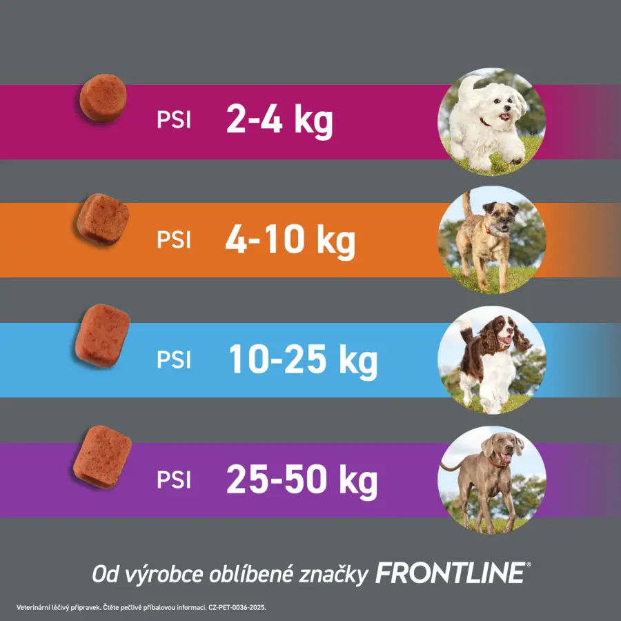 - 10-25 kg (hmotnost psa) - 1 žvýkací tableta