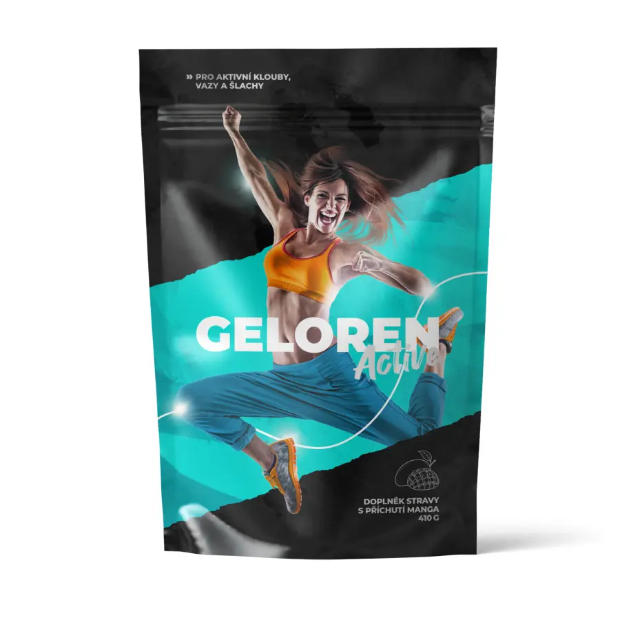 Geloren Active s příchutí manga je doplněk stravy na klouby v podobě želé s vysokým obsahem vyživujících látek, určen pro osoby s vyšším zatížením kloubů a seniory. Obsahuje vysoké množství kyseliny hyaluronové, porcinního chondroitin sulfátu, hydrolyzovaného kolagenu, želatiny a vitamínu C, jenž přispívá k normální tvorbě kolagenu pro normální funkci kostí a chrupavek. Kyselina hyaluronová je organická látka přirozeně se nacházející v lidském těle, je součástí mezibuněčné hmoty a ve zvýšené míře ji najdeme právě v kloubech. Geloren využívá jedinečné výhody želatinové formy. Želé se díky tomu snadněji konzumuje, má příjemnou příchuť a obsahuje také vitamín C, který přispívá k normální tvorbě kolagenu pro normální funkci kostí a chrupavek. Obsahuje nejvhodnější varianty surovin ve vysoké kvalitě, což zajištuje vstřebatelnost, bezpečnost a výživovou schopnost produktu.