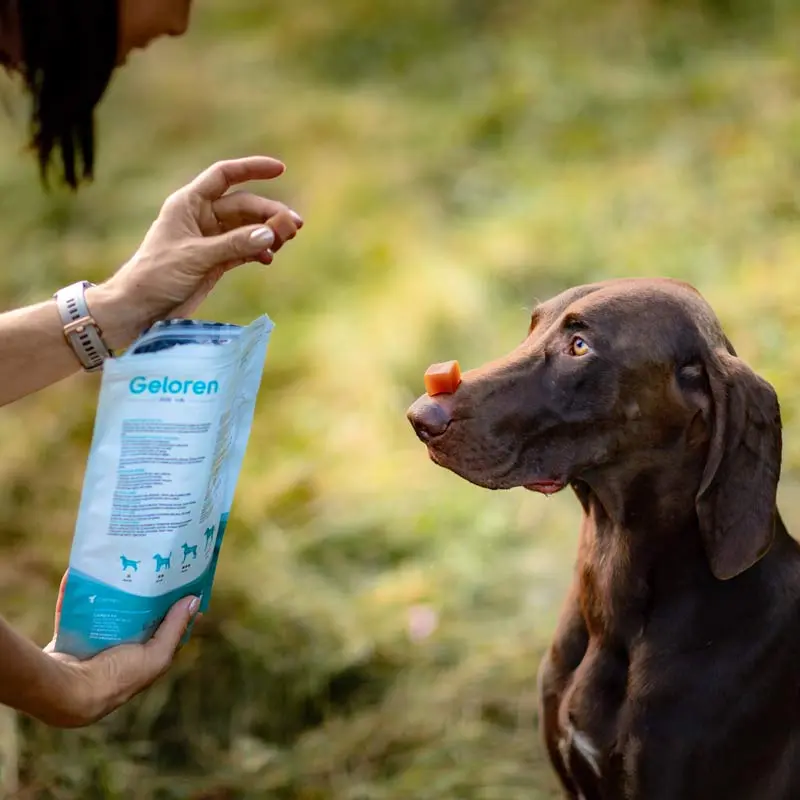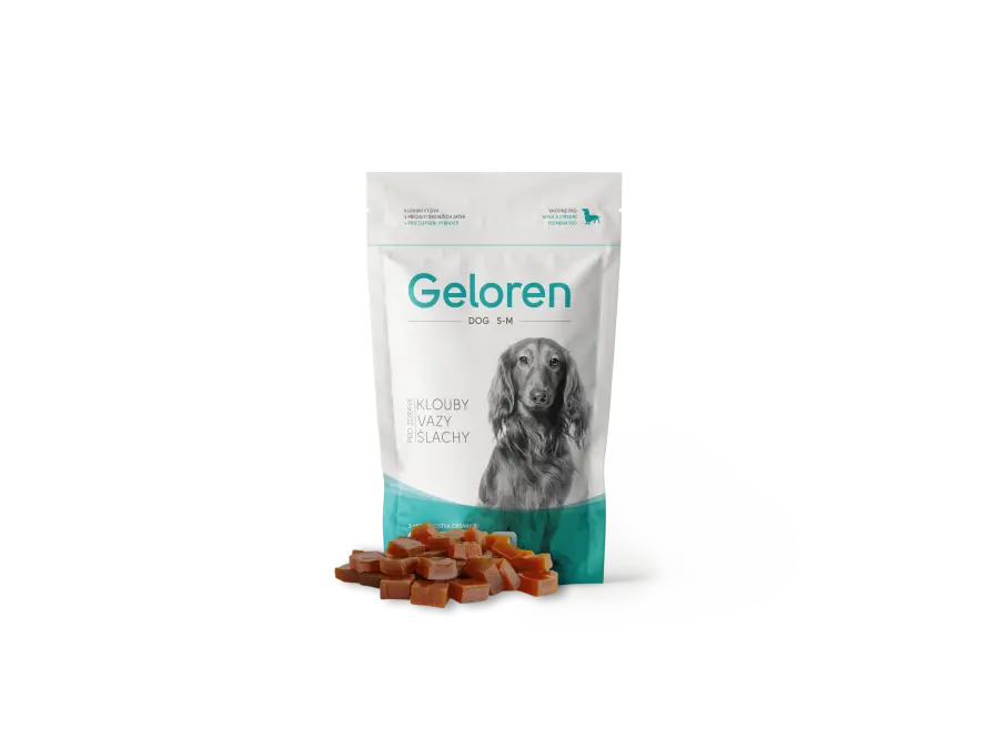 Geloren dog S-M kloubní výživa ve formě ochucených žvýkacích kostek je určená pro malá a střední plemena psů. Napomáhá regeneraci kloubů u řady pohybových problémů. Slouží také jako prevence pro prodloužení aktivního života psa.