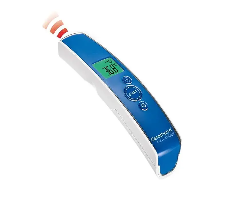 GERATHERM Bezkontaktní teploměr usnadní měření tělesné teploty, ale i předmětů, vody nebo povrchů. Měří pomocí infračervené energie. Tato energie je poté zachycena čočkami přeměněna v teplotní hodnotu. Měří rychle, přesně a hygienicky během několika vteřin. Přístroj má pamět na 30 naměřených hodnot.