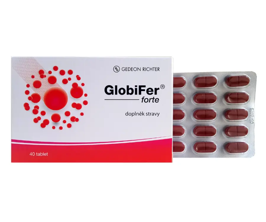 GlobiFer forte 40 tablet je důmyslněvytvořený dvousložkový (fortifikovaný) preparát železa, který se snadno a lépevstřebává bez dráždění trávicího systému. Vstřebávání není ovlivněno příjmemléků, potravy a tekutin, lze užívat jednu až dvě tablety kdykoli během dne.