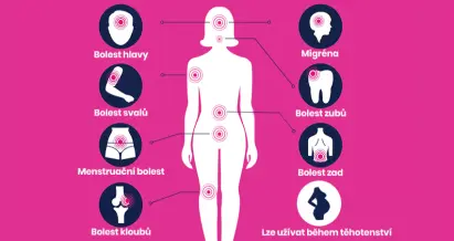 Analgetikum, které pomáhá při bolesti hlavy, zubů, zad, svalů, kloubů a menstruační bolesti, snižuje horečku a tlumí zánět, pro dospělé a dospívající od 12 let.