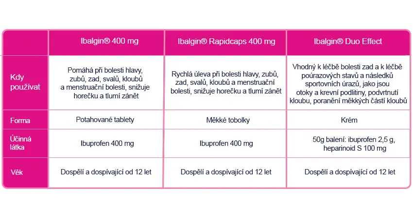 IBALGIN® 400 MG POMÁHÁ ULEVIT OD MÍRNÉ AŽ STŘEDNĚ SILNÉ BOLESTI
