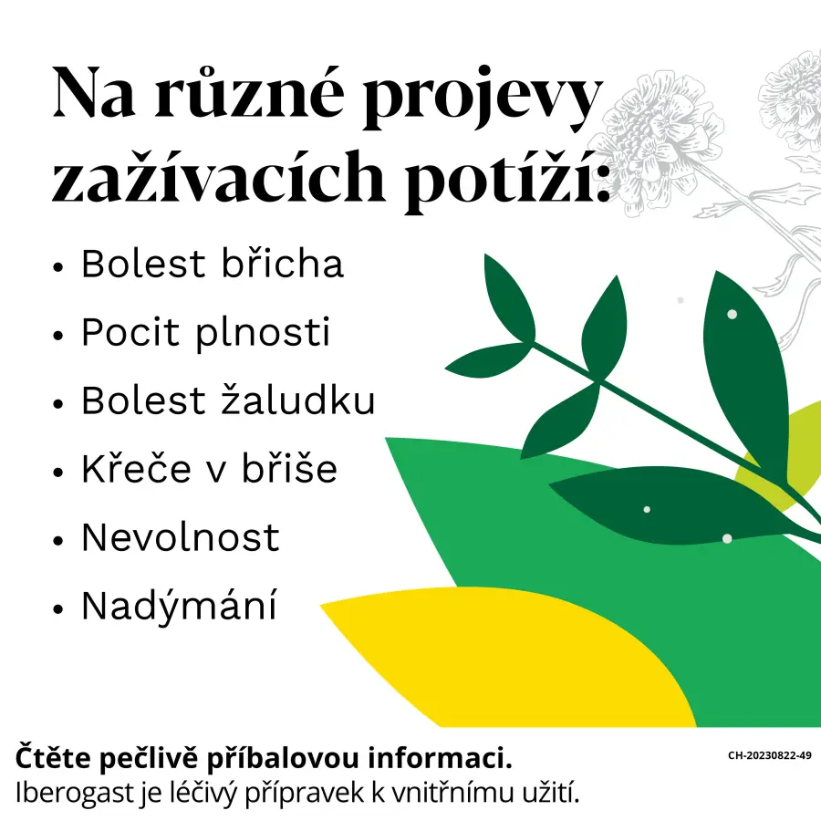 Lék Iberogast® efektivně uleví od různých zažívacích potíží. Jeho komplexní účinek pramení z vyváženého obsahu výtažků z různých částí 9 bylin (iberky hořké, anděliky lékařské, ostropestřce mariánského, máty peprné, kmínu kořenného, heřmánku pravého, meduňky lékařské, lékořice lysé a vlaštovičníku většího). Díky svému unikátnímu složení je vhodný jak pro poruchy funkce a pohybu střev tak i žaludku. Účinně tak ulevuje od celé řady symptomů, jakými jsou například bolest břicha, křeče v břiše, nadýmání, bolesti žaludku nebo nevolnost.