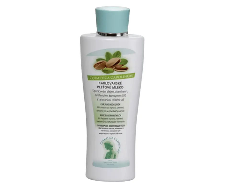 Karlovarské pleťové mlékos vysokým obsahem pistáciového oleje, vitamínu E, panthenolu, koenzymu Q10, karlovarské vřídelní soli a dalších hydratačních složek. Hedvábně jemná, lehká, snadno vstřebatelná emulze s obsahem „zelených“ přírodních surovin z olivového oleje. Obsažené látky pomáhají obnovit přirozenou lipidickou bariéru, pleť je vypnutá a pružná.