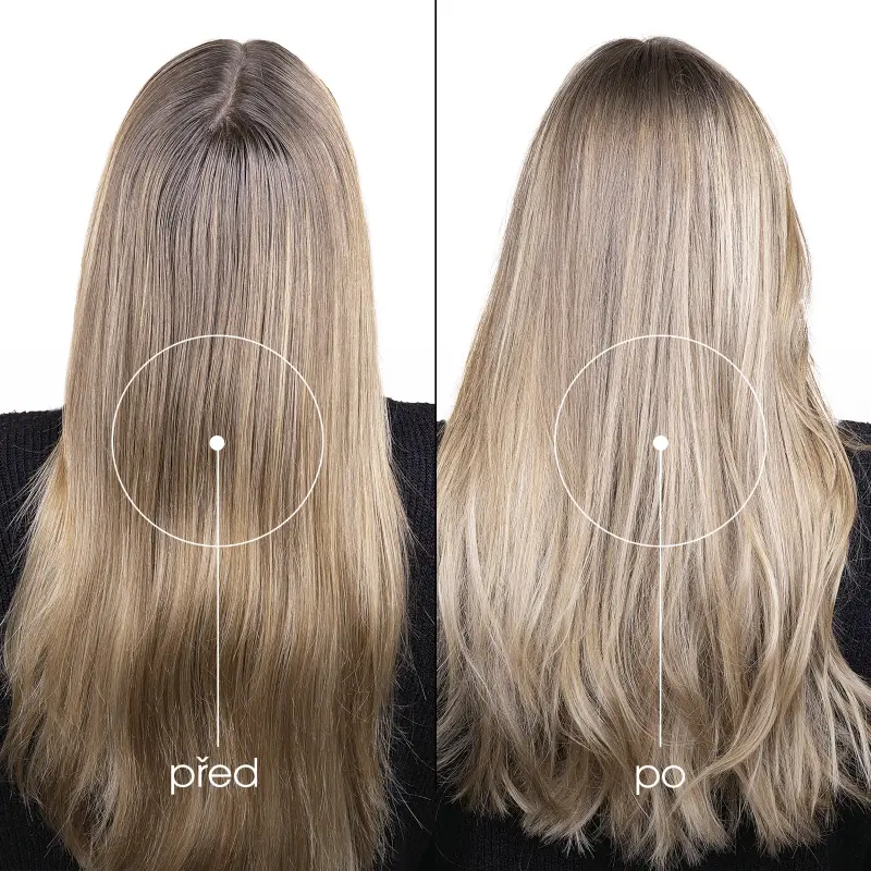 - Aplikujte ke kořínkům vlasů ze vzdálenosti 30 cm, pramen po prameni.