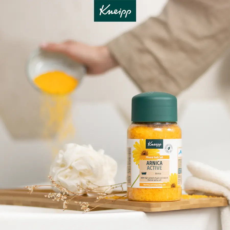 Kneipp koupelová sůl Svaly a klouby s vzácnými extrakty z arniky horské a silicemi rozmarýnu napomáhá uvolnění svalů a kloubů, zejména po zvýšené fyzické námaze. Kromě účinných látek rostlinného původu v koupelových solích Kneipp nenajdete nic, co by tam nepatřilo. Žádné konzervanty, parafíny ani silikony.