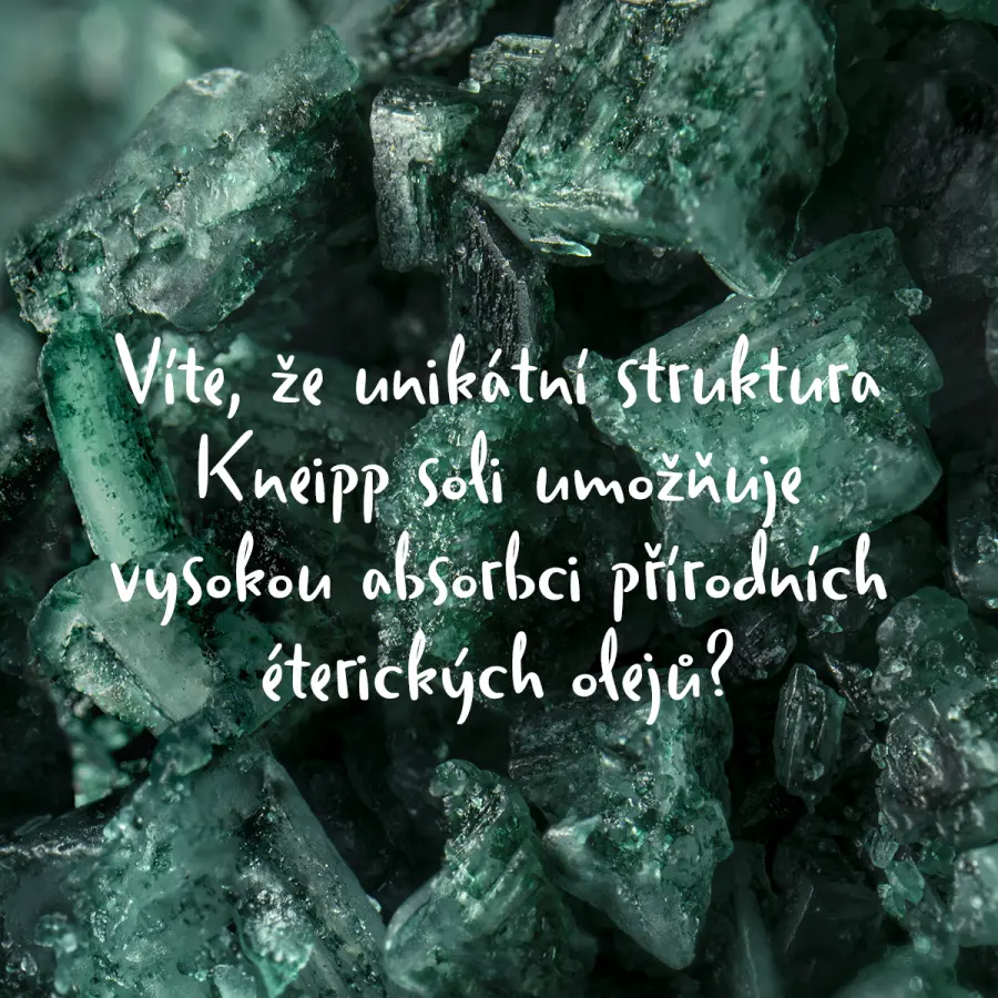 Relaxační koupel s koupelovou solí je vhodná při regeneraci organismu po zvýšené svalové námaze. Vůně esenciálních olejů příjemně vzpruží tělo i mysl.