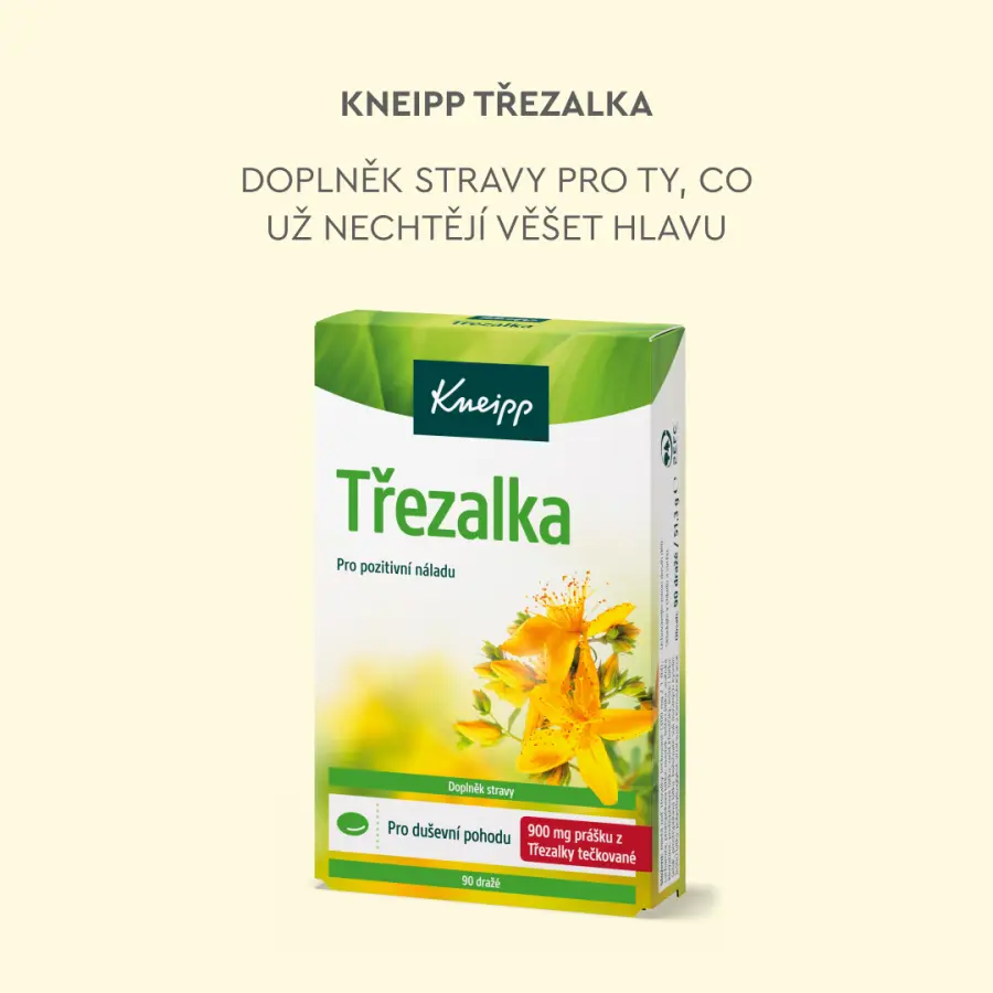 Ne vždy zvládáte stresové situace podle svých představ? Vyzkoušejte Kneipp doplněk stravy Třezalka s výtažky z kvetoucí nati třezalky tečkované, který působí příznivě na zklidnění nervového systému a celkovou vnitřní pohodu. Na rozdíl od bylinných čajů s obsahem této byliny můžete mít dražé vždy po ruce. 1 tableta obsahuje 300 mg třezalky, v rámci denní dávky tedy přijmete celkem 900 mg třezalky.