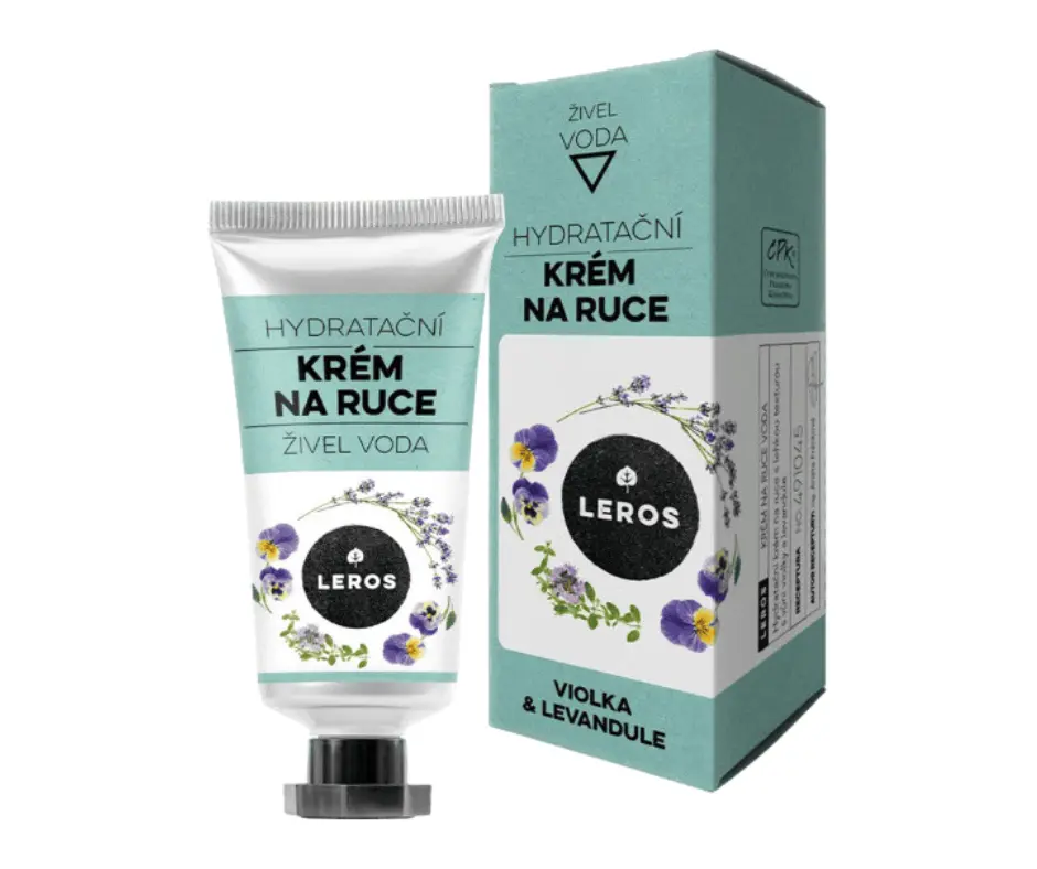 LEROS živel Voda krém na ruce je určen pro každodenní péči o pokožku rukou. Obsahuje levandulový hydrolát, který pomáhá zklidňovat pokožku a podporuje její přirozenou obnovu. Výtažky z mateřídoušky a heřmánku mají antiseptické účinky a přispívají k udržení pokožky v dobrém stavu. Kombinace sezamového, slunečnicového a hroznového oleje podporuje dobrou vstřebatelnost a pomáhá udržet pokožku hydratovanou a vláčnou bez pocitu mastnoty. Jemná bylinně-květová vůně levandule a violky je vhodná i pro časté používání.