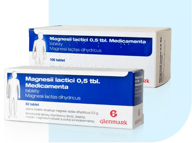 Léčivá látka: magnesii lactas dihydricus (dihydrát magnesium-laktátu) 0,5 g v 1 tabletě.