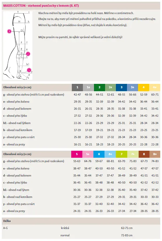 MAXIS COMFORT-COTTON kompresní punčochy jsou zdravotní kompresivní punčochy s matnou úpravou, které nabízejíoptimální složení bavlny, mikrovlákna a vlákna Lycra®. Bavlnaje použita v očkové přízi, která přichází do přímého kontaktu s pokožkou. I při28% podílu bavlny v produktu má uživatel při nošení pocit plnohodnotněbavlněného materiálu. To činí z punčoch MAXIS COTTON nejlepší a nejpoužívanějšíbavlněné kompresivní punčochy na českém trhu. Mikrovláknozajišťuje v punčoše odvod vlhkosti od těla, přizpůsobivost, jemnost aelastičnost.