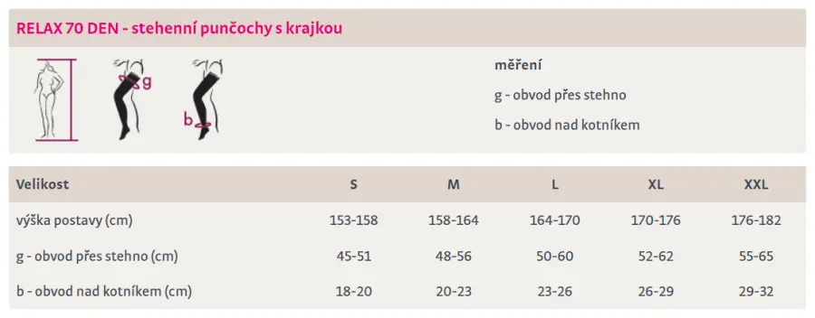 - elegantní krajka se třemi silikonovými proužky (zabraňujesklouzávání punčoch)