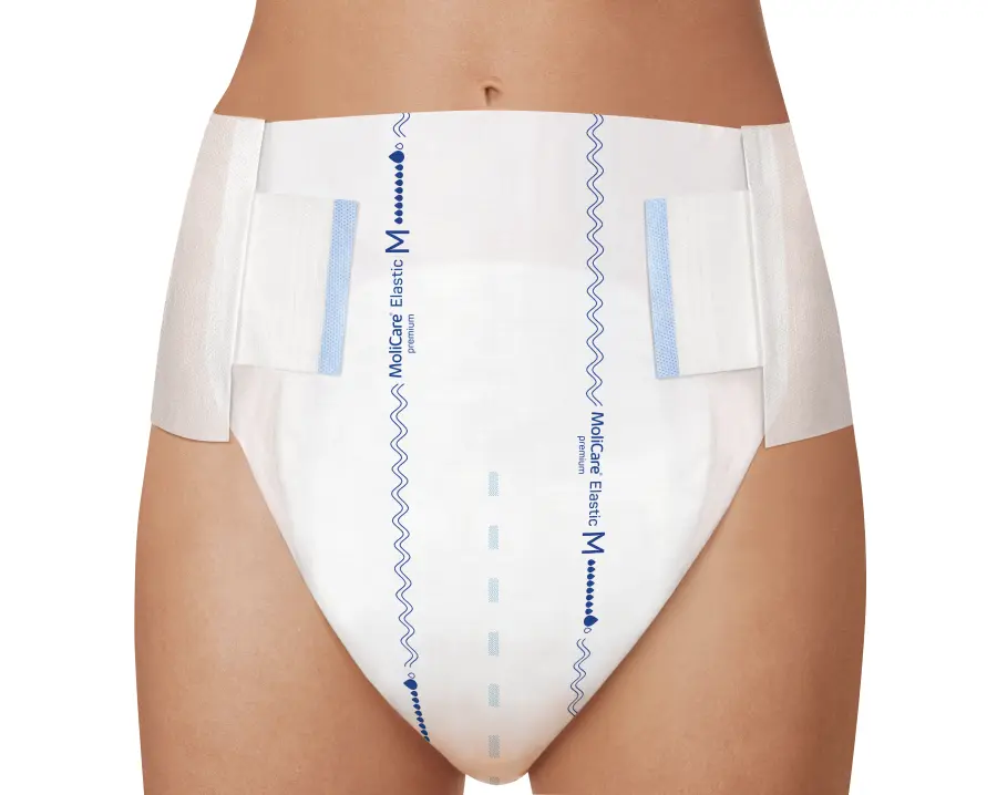 MoliCare Elastic 9 kapek jsou unikátní zalepovací kalhotky pro dospělé s elastickým pasem jsou určeny pro usnadnění každodenní péče o osobu s těžkou inkontinencí. Hodí se na denní a noční použití, jsou anatomicky tvarované a vhodné pro ženy i muže. Díky nové technologii absorpčního jádra MoliCare SkinGuard® nabízejí spolehlivou ochranu proti protečení. Savé jádro rychle absorbuje moč a pacient je okamžitě v suchu. Povrch kalhotek pomáhá udržet pokožku zdravou, a to i díky vyváženému pH v rozmezí 4,5–5,5. Indikátor vlhkosti na vnější straně ukáže, kdy je vhodné kalhotky vyměnit.
