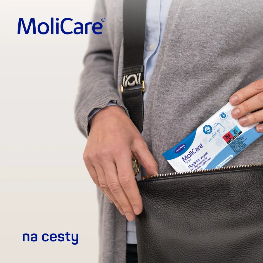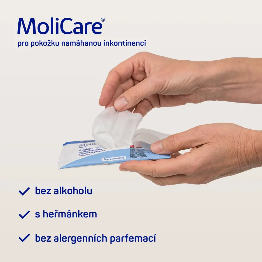 Hygienické ubrousky MoliCare Skin jsou vhodné pro snadnou a rychlou hygienu nejen intimních partií a zároveň jako vhodný doplněk na sport či cestování. Složení s pH 5,5 navíc obohaceno o heřmánek. Vhodné i jako doplněk pro ženy s lehkým únikem moči.