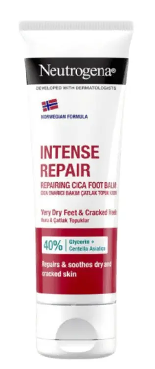 Neutrogena intenzivní regenerační balzám na chodidla intenzivně hydratuje a regeneruje suchou pokožku a popraskané paty. Unikátní složené obsahuje pantenol, který má zklidňující účinky. Glycerin pomáhá obnovit přirozenou hydrataci pokožky a Centella Asiatica působí jako silný antioxidant. Textura nelepí a snadno se vstřebává. Pokožka je jemnější a hladší. Balzám také pomáhá předcházet vzniku mozolů a popraskaných pat.