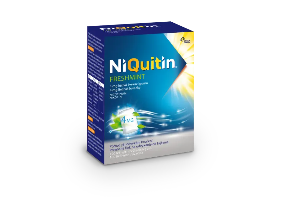 Léčivé žvýkací gumy NiQuitin Freshmint jsou ideální řešení pro kuřáky při náhlé chuti na cigaretu a jsou kombinací rychlé úlevy od chuti na cigaretu a dlouhodobé svěží chuti. Žvýkačku můžete užít, kdykoli dostanete chuť si zakouřit. NiQuitin Freshmint 4 mg léčivé žvýkací gumy jsou určeny pro kuřáky, kteří vykouří více než 20 cigaret denně.