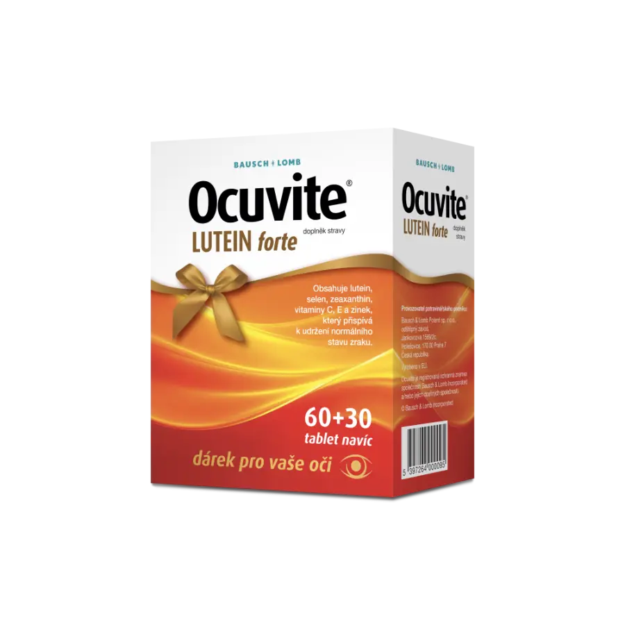 Jedna tableta obsahuje Vitamin C 60 mg (75 % RHP*), vitamin E 8,8 mg alfa-tokoferol (73 % RHP*), lutein 6 mg, zinek 5 mg (50 % RHP*), zeaxanthin 0,5 mg, selen 20 mcg (36 % RHP*). * RHP - referenční hodnota příjmu