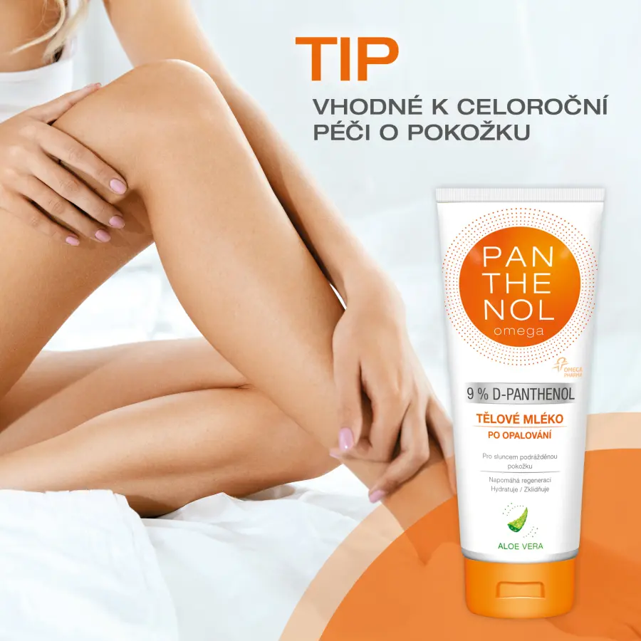 Tělové mléko Panthenol Omega Aloe Vera 9% přináší úlevu sluncem podrážděné pokožce, napomáhá regenerovat a hydratovat pokožku po opalování. Pomáhá obnovit elasticitu pokožky, nezanechává mastný film. Pro všechny druhy pokožky. Dermatologicky testováno.