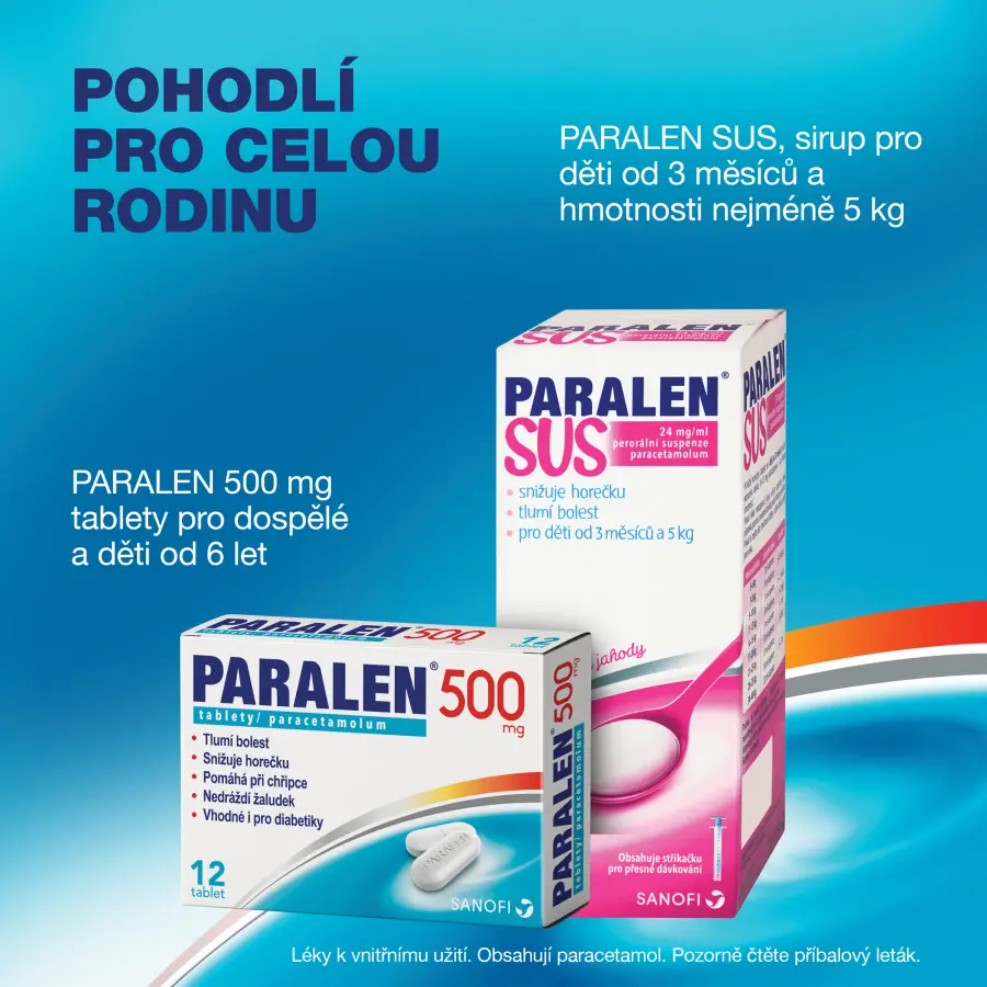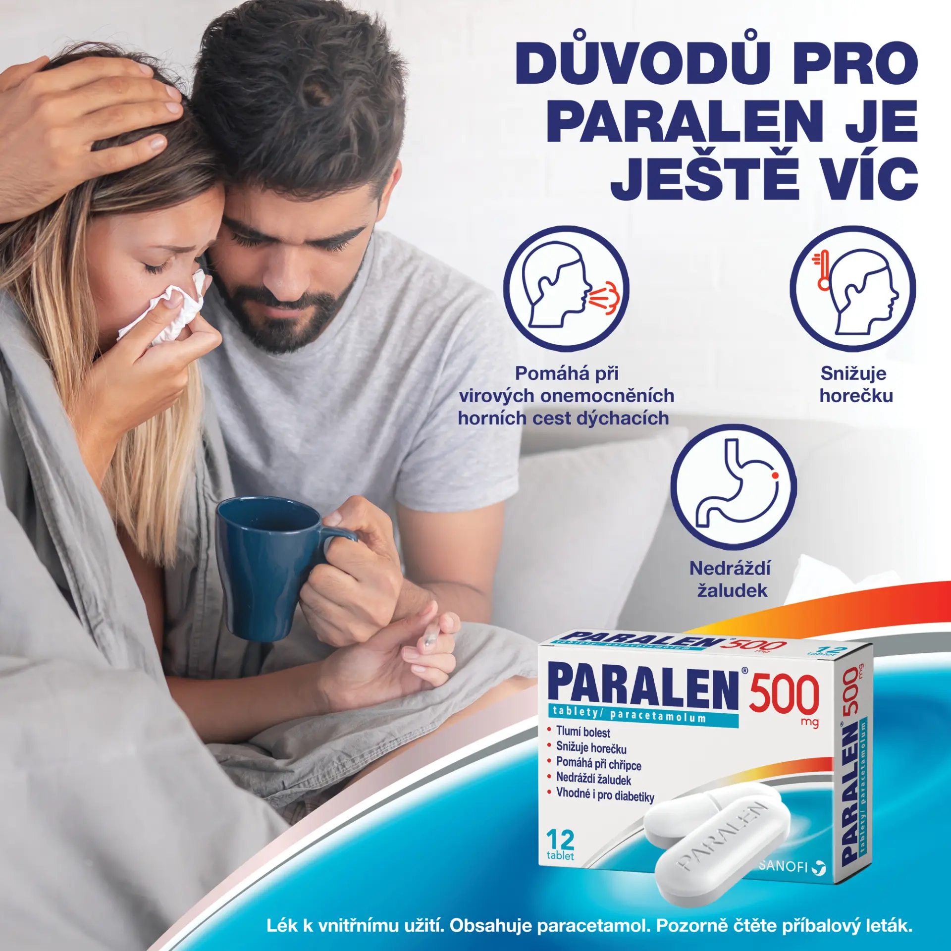 Tablety PARALEN® 500 mg jsou určeny ke snížení horečky při chřipce, nachlazení a jiných infekčních onemocněních. Zároveň jsou vhodné při bolestech různého původu, například při bolestech hlavy, zubů, bolestivé menstruaci, bolestí zad a při bolesti pohybového ústrojí provázející chřipku a nachlazení.