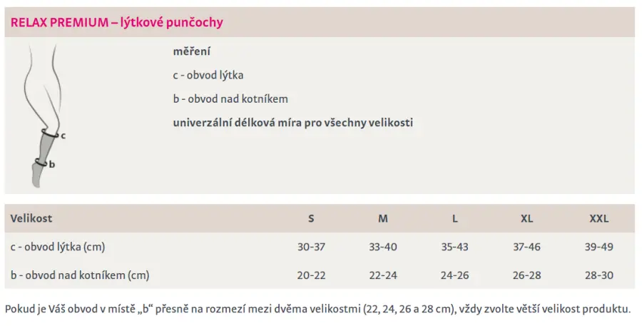 MAXIS RELAX PREMIUM lýtkové punčochy pomáhají předcházet vzniku cestovní trombózy, jsou vhodné přidlouhodobém sezení a stání, po lymfodrenáži anebo po kosmetickém zákroku narozšířených kožních žilkách (pavoučí žíly – metličky). Jsou určenyvšem ženám, které chtějí mít krásné, zdravé a lehké nohy bez žilek a otoků.Punčochy jsou charakteristické svým bezkonkurenčně jemnýmmateriálem, který je úžasně měkký na omak. Přes svou jemnost je dokonale pevný.Díky vysoké elasticitě vláken jsou punčochy nabízeny v univerzální délkové mířea skvěle padnou.