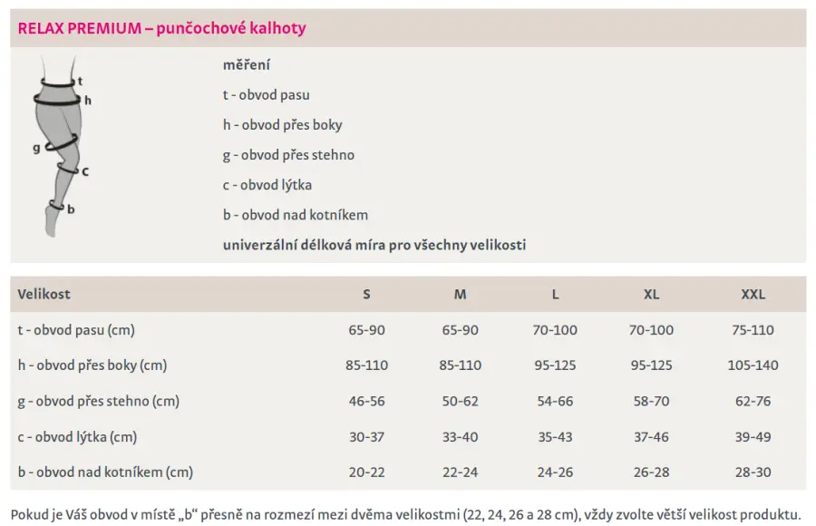 MAXIS RELAX PREMIUM punčochové kalhoty pomáhají předcházet vzniku cestovní trombózy, jsou vhodné přidlouhodobém sezení a stání, po lymfodrenáži anebo po kosmetickém zákroku narozšířených kožních žilkách (pavoučí žíly – metličky). Jsou určenyvšem ženám, které chtějí mít krásné, zdravé a lehké nohy bez žilek a otoků.Punčochy jsou charakteristické svým bezkonkurenčně jemnýmmateriálem, který je úžasně měkký na omak. Přes svou jemnost je dokonale pevný.Díky vysoké elasticitě vláken jsou punčochy nabízeny v univerzální délkové mířea skvěle padnou.